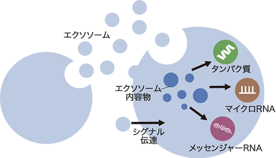 エクソソームは、細胞同士が情報をやりとりする際に使われる「メッセンジャー」のような存在。