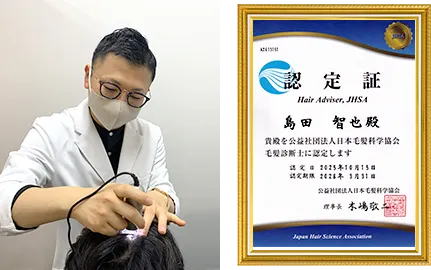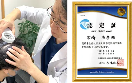 当院では毛髪診断士の資格を持つスタッフと院長が、あなたの髪と頭皮を丁寧に診断します。