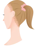 長期間、髪の一部に強い負荷がかかるヘアスタイルを続けると、その部分の抜け毛が目立つ「牽引性脱毛症」が起こります。ポニーテールや同じ分け目を続けることで発症しやすく、髪型を時々変えることで予防可能です。